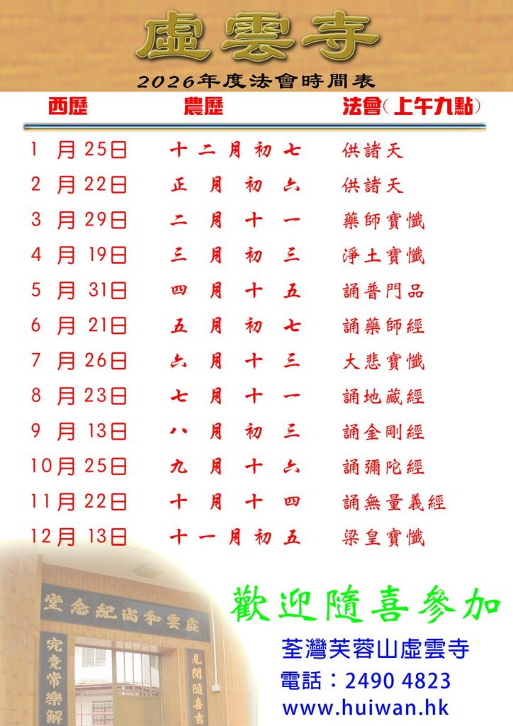 備註:以上供養可於法會外的一般日子預訂,詳情可向本堂(2490-4823)查詢。